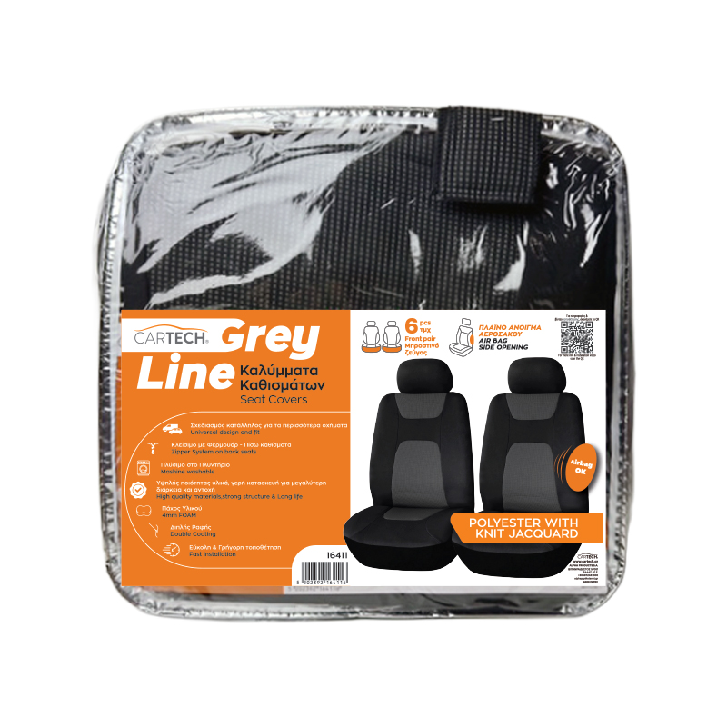 ΚΑΛΥΜΜΑΤΑ ΚΑΘΙΣΜΑΤΩΝ ΜΠΡΟΣΤΙΝΑ ΖΕΥΓΟΣ 6ΤΜΧ GREY LINE POLYESTER WITH KNIT JACQUARD ΜΑΥΡΟ-ΓΚΡΙ