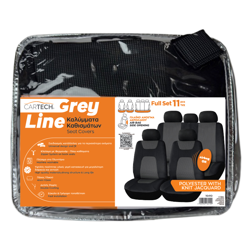 ΚΑΛΥΜΜΑΤΑ ΚΑΘΙΣΜΑΤΩΝ FULL SET 11ΤΜΧ ΔΙΑΙΡΟΥΜΕΝΟ GREY LINE POLYESTER WITH KNIT JACQUARD ΜΑΥΡΟ-ΓΚΡΙ