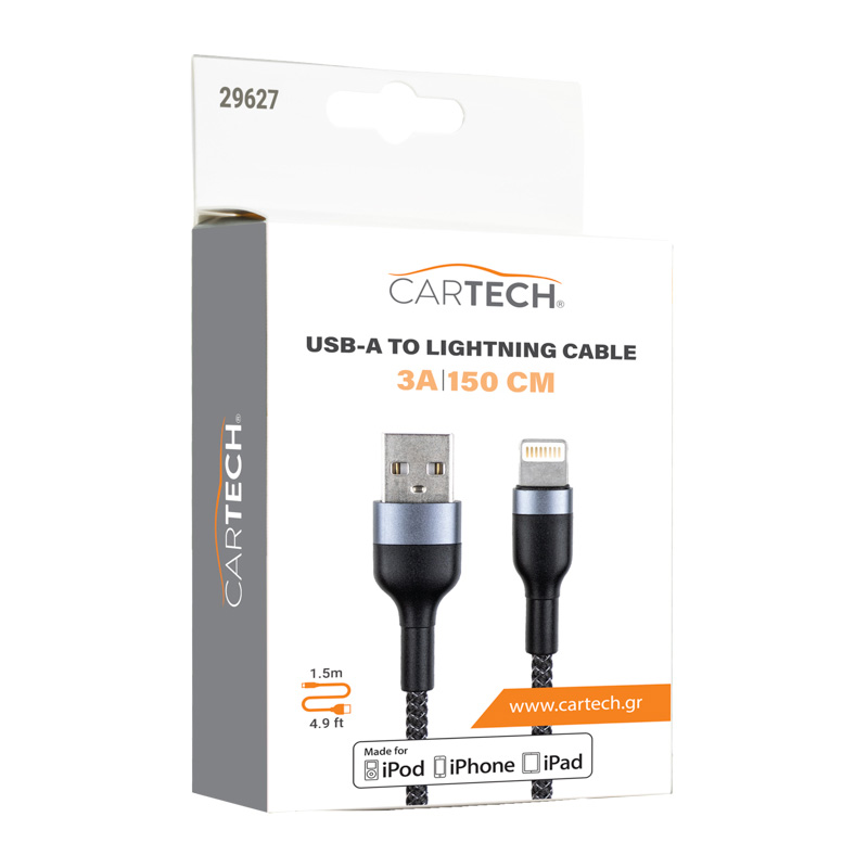 •Γρήγορος συγχρονισμός και φόρτιση. •Καλώδιο USB-A σε Lightning. •12W •3A •Μήκος καλωδίου: 1,5 μέτρο.