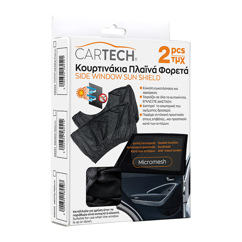 Τα Πλαϊνά Κουρτινάκια Φορητά (2τμχ) προσφέρουν προστασία από τον ήλιο και αυξημένη άνεση κατά τη διάρκεια των ταξιδιών σας με το αυτοκίνητο. Με διαστάσεις 46×63/114 cm , είναι ιδανικά για να προστατεύουν από τη θερμότητα και την ηλιακή ακτινοβολία. Εύκολα στην τοποθέτηση και την αφαίρεση, παρέχουν σκίαση και δροσιά για εσάς και τους επιβάτες σας.
