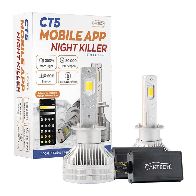ΛΑΜΠΑ LED CT5 MOBILE H1 SHORT 160W WHITE 6500K NIGHT KILLER CARTECH